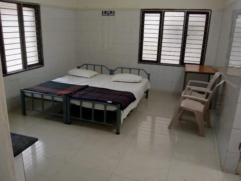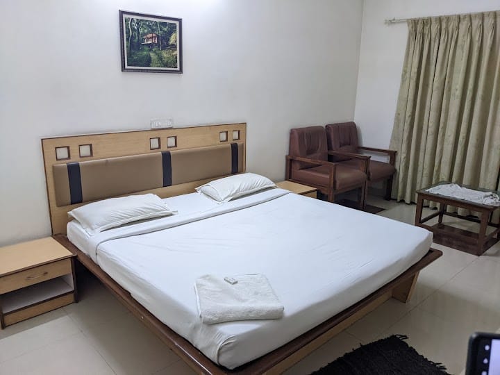 The AC Double Room at Sannidanam Guest House offers a comfortable and spacious stay, featuring two large beds with quality linens, air-conditioning, and modern amenities.